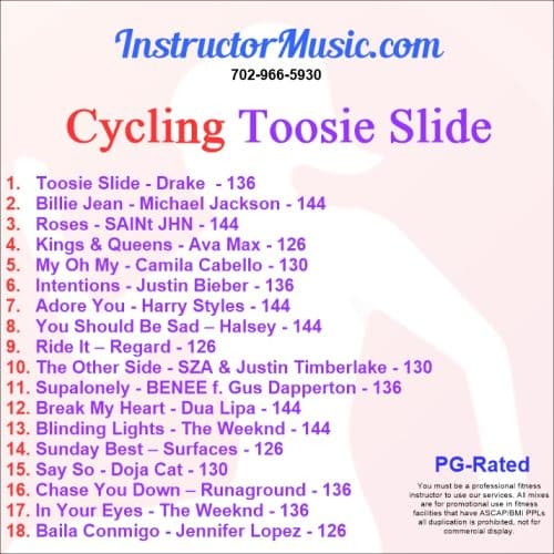 SET is an interval format that used to be used by 24hr Fitness for their SET classes – the name has changed but not sure what it is called now. Basically It’s 17 songs + a cooldown. BPM is 126 for all 17 songs. There are cueing whistles 30sec before the end of each song & each song is about 3:18 min in length. The songs are NOT mixed together and there are no gaps between the songs.